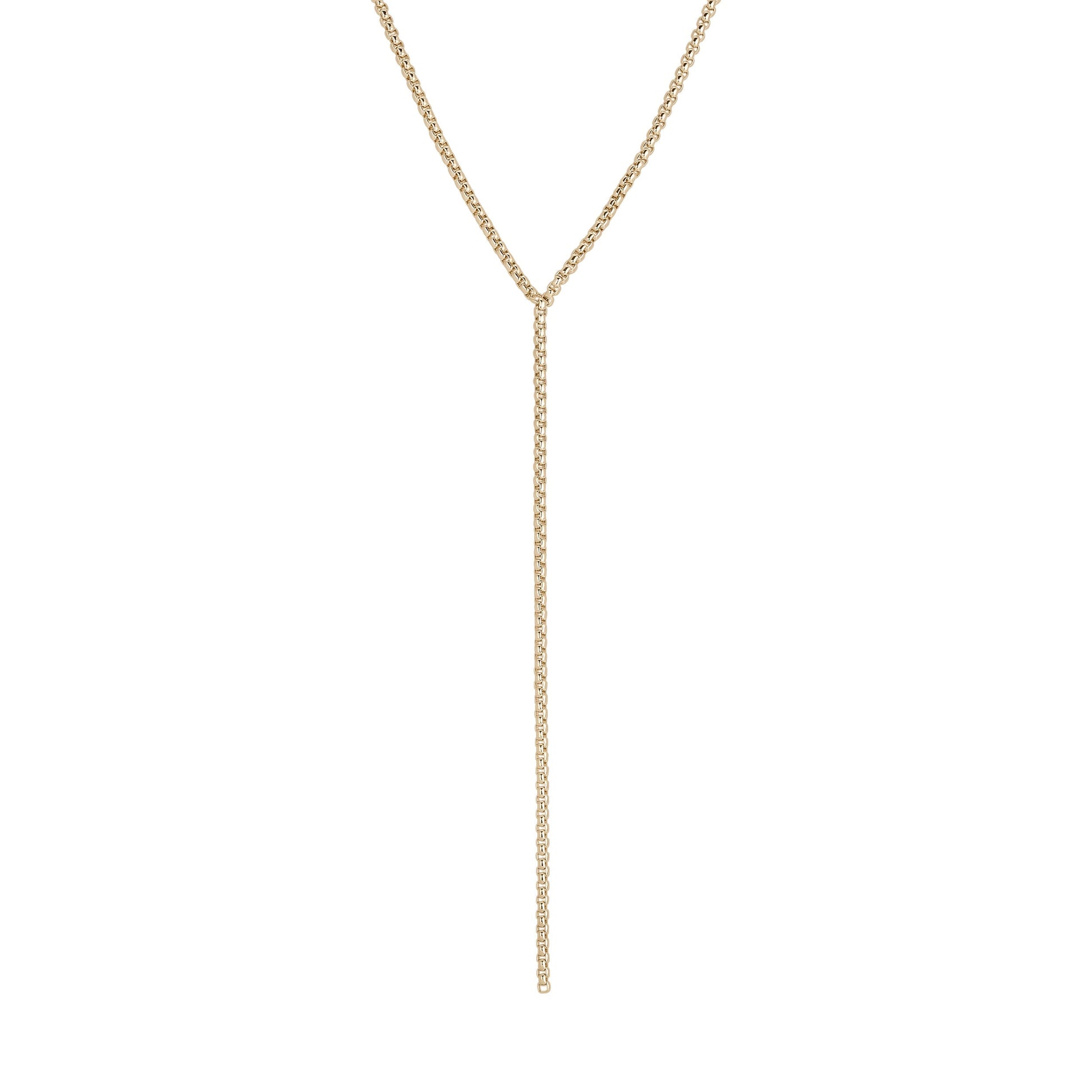 Our Thin Luciana Box Chain Lariat (or Y Necklace) is made from our Venetian box chain.